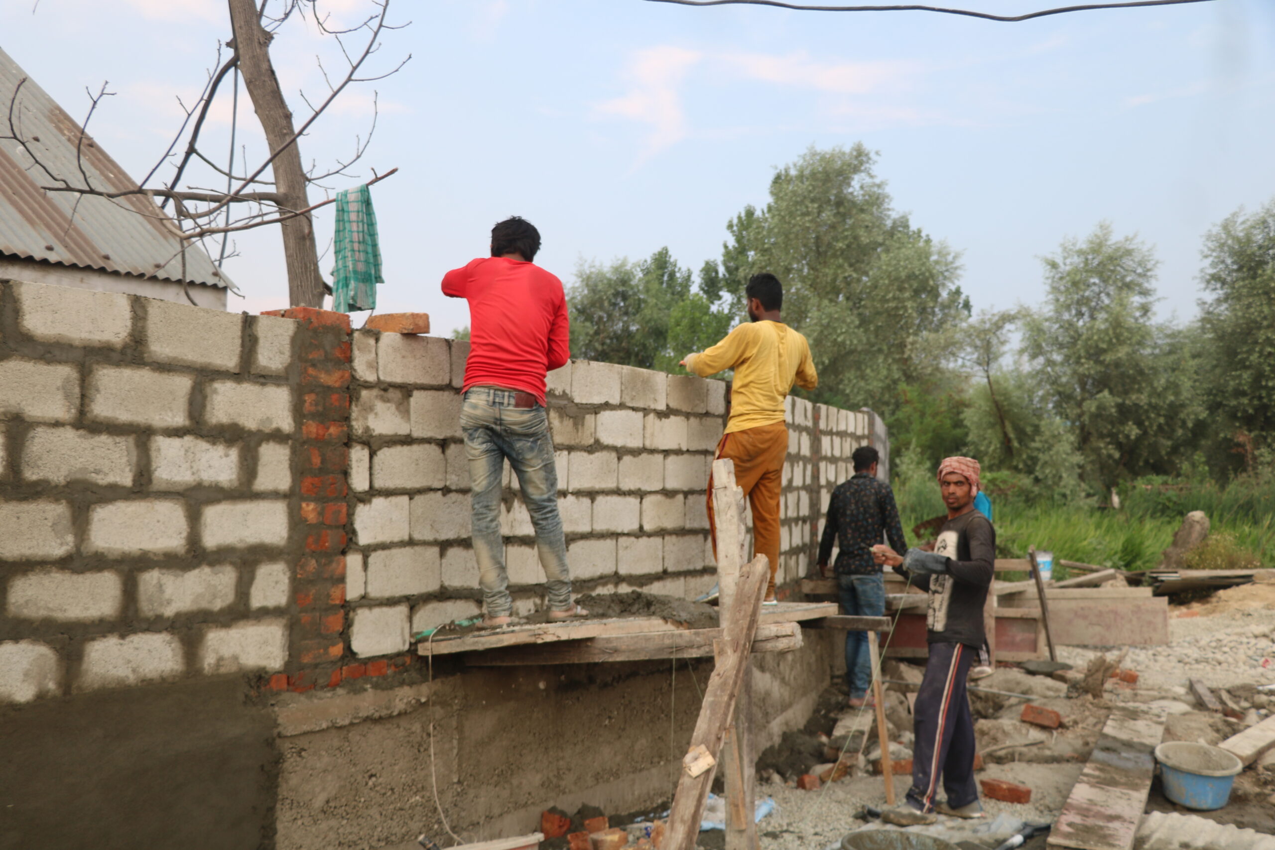 Despite the abeyance orders from SMC, the owner has constructed a boundary wall of cement and concrete hollow blocks on irrigation Khul at Toiba Colony-Nadirgund-Peerbagh.