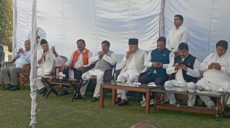 Dr Abdullah was flanked by former minster and National Panther’s Party Leader, Harshdev Singh, JK Congress Chief Viqar Rasool Wani, former Minister and Congress Vice President Raman Bhalla, DDC member and AAP leader Taranjit Singh Tony, former MLA M Y Taragami, JK Shiv Sena President Manish Sahwany, PDP leader Amrik Singh Reen.