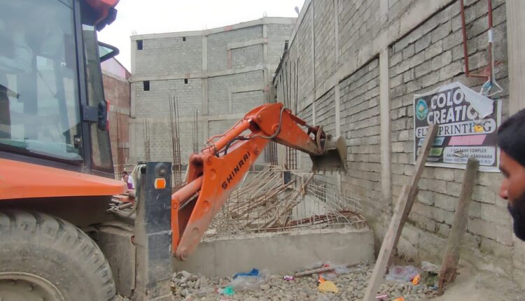 MC Handwara Demolishes ‘Illegal’ Under-construction Shopping Complex