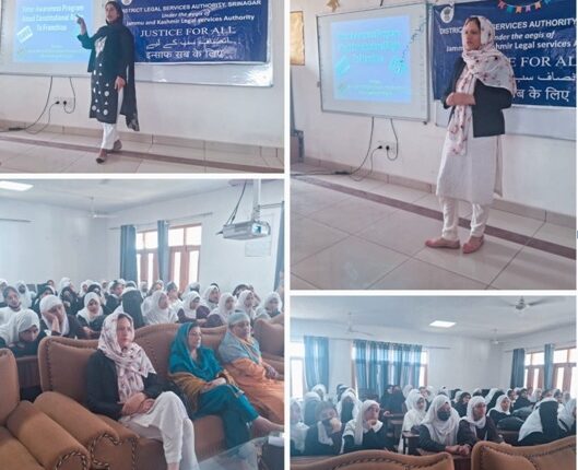 The event witnessed the participation of Dr Samina Wani, Principal of Government Girls Higher Secondary School, Panel Lawyers, DLSA Srinagar, Staff Members, Students of GGHSS, Chanapora, Srinagar and Para Legal Volunteers of DLSA Srinagar.