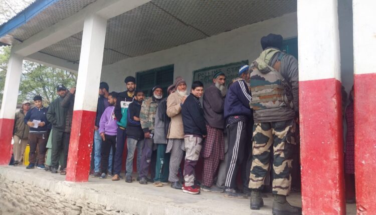 Baramulla Lok Sabha constituency has recorded over 54 percent voter turnout till 5 pm even as voting is underway with long queues of voters outside the polling stations.