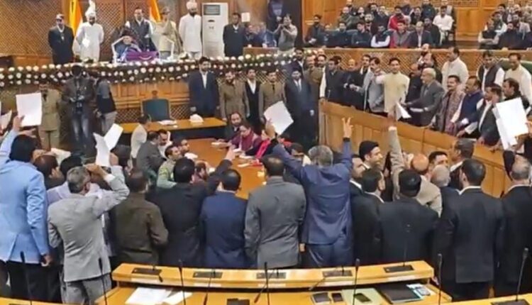 As per the news agency—Kashmir News Observer (KNO), as soon as proceedings of the House, National Conference MLAs stood up demanding that their adjournment motion should be allowed.