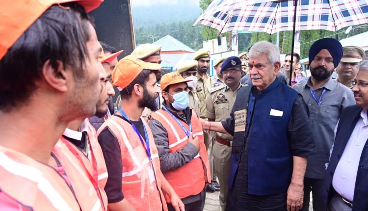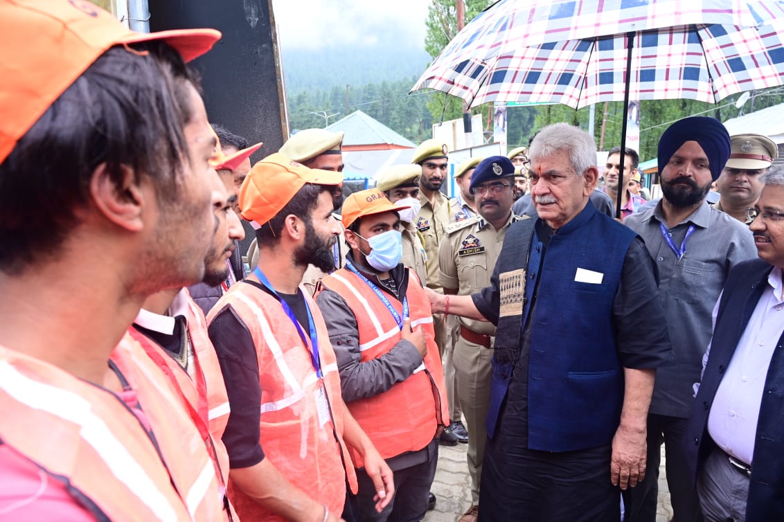 Lieutenant Governor Manoj Sinha, on Sunday visited the Nunwan Base camp and Chandanwari in Pahalgam.