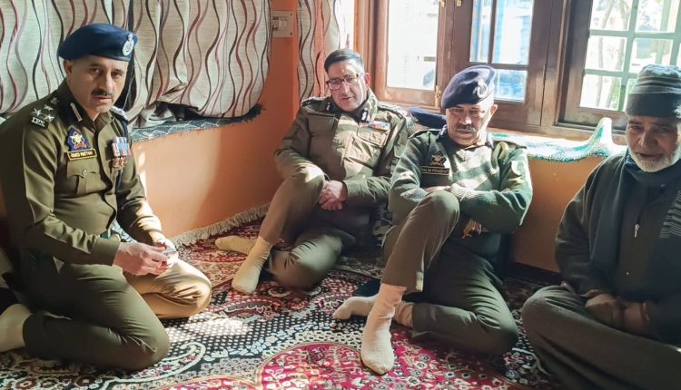Director General of Police Nalin Prabhat and IGP Kashmir V K Birdi on Monday visited Hariparigam village in Tral to offer condolences to the family of Crime Branch photographer Javid Mansoor Rather, who died in the accidental explosion inside Nowgam Police Station.
