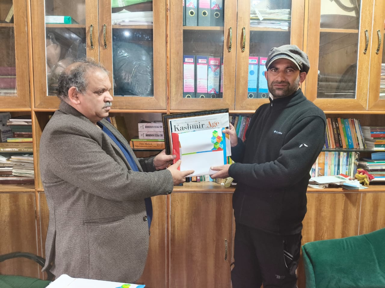In a felicitation ceremony held at Press Enclave, Srinagar, Ajaz Ahmad Turay of Turay News Agency, Shopian, was awarded the title of Best Newspaper Distributor of Shopian. The award was presented by the Chief Editor of Daily Kashmir Age, Mr. Aakash Amin Bhat.