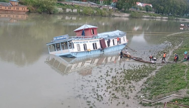 A houseboat partially sank in the River Jhelum in the Rajbagh area of Srinagar on Wednesday amid continuous rainfall, officials said.
